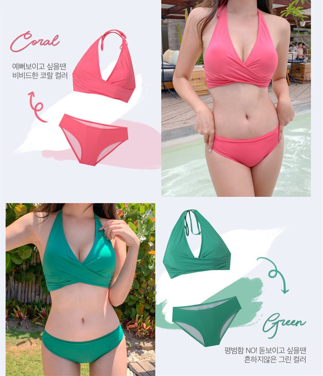 ◎【送料無料】水着 レディース ビキニ 2点セット ママ水着 無地 ブラ シンプル パッド付き 20代 30代 40代