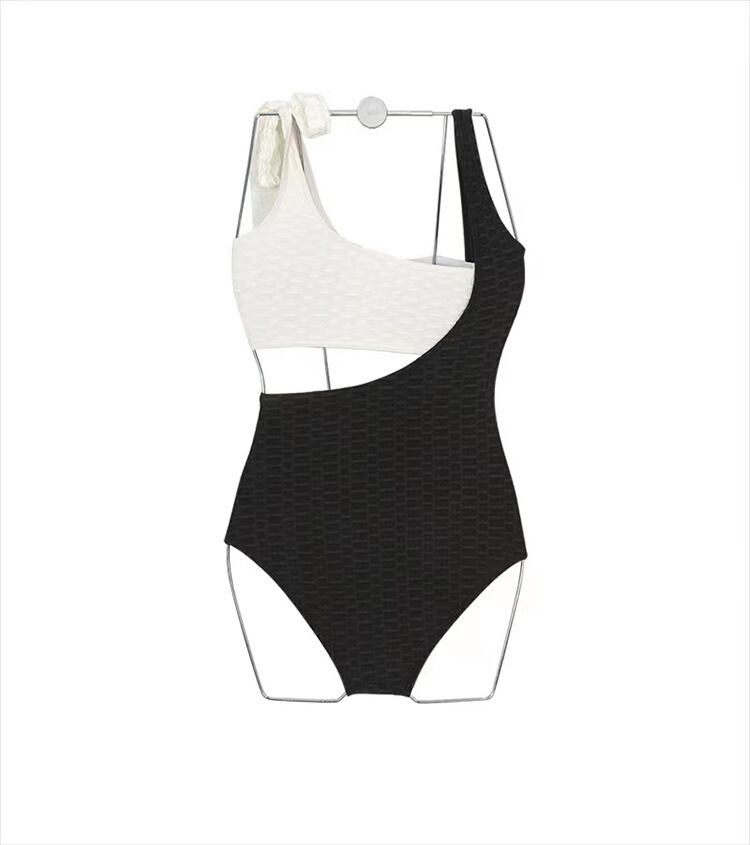 ◎【送料無料】水着 レディース バイカラー ショルダーリボン ワンピース 水着 アシンメトリー オールインワン 新作