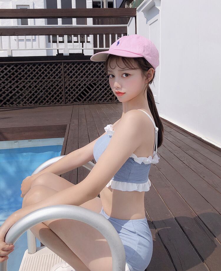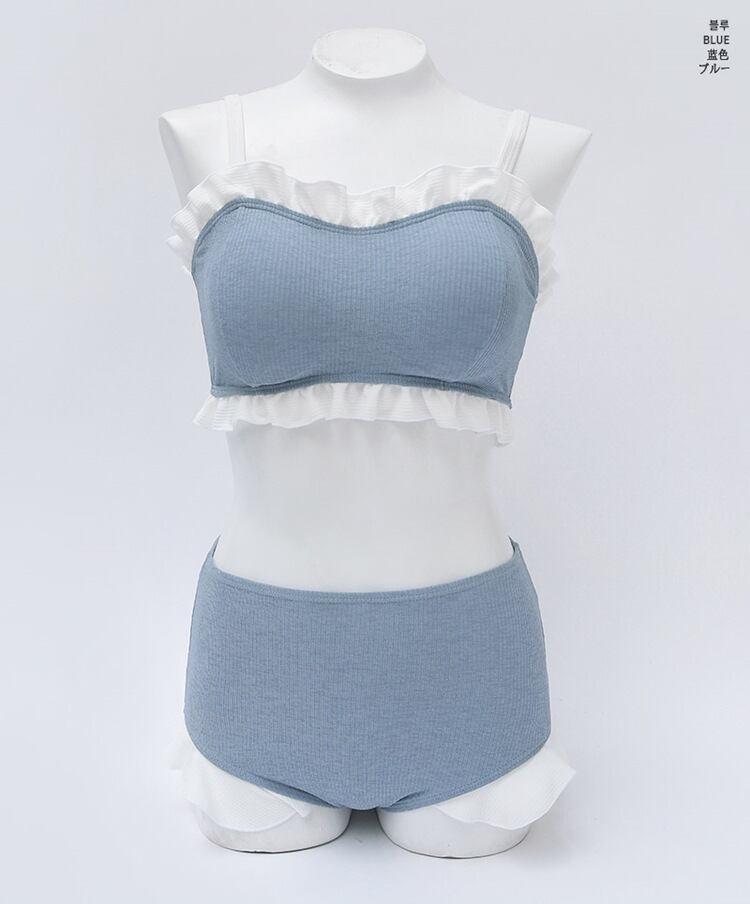 人気のスカイブルー×フリルバンドゥが可愛いビキニ2点セット。