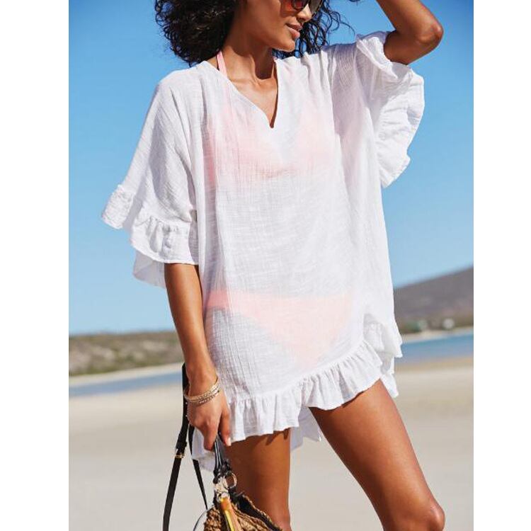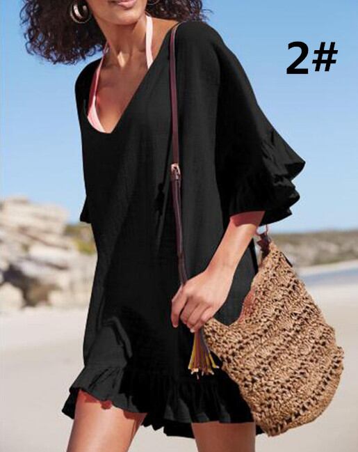 ◎【送料無料】ビーチカバー リゾートウェア ビーチウェア 水着の上に着る Vネック 日焼け防止 レディース オシャレ