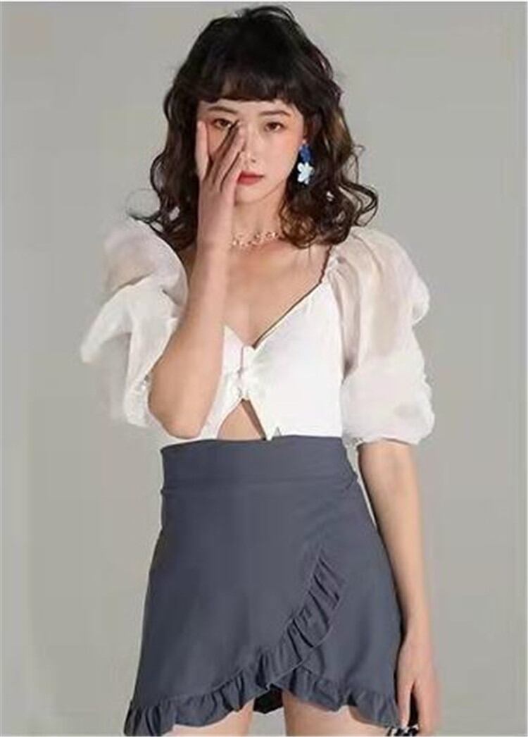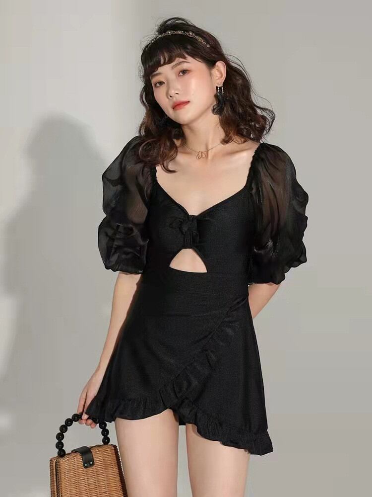 半袖 大人気 2022年新作 レディース ワンピース水着 パフスリーブ スリム 温泉