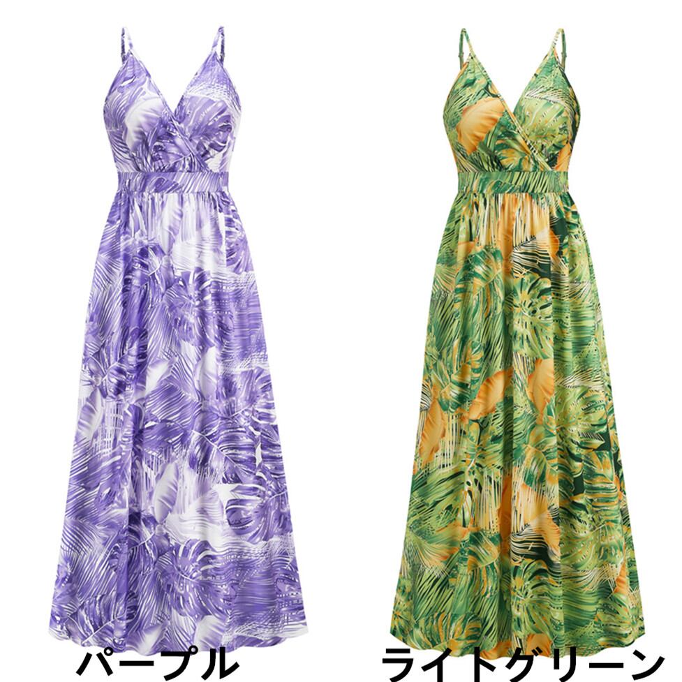 ◎【送料無料】花柄 キャミソールワンピース ワンピース ボヘミアン風 マキシ丈 リーフ柄 キャミワンピ 欧米 リゾート