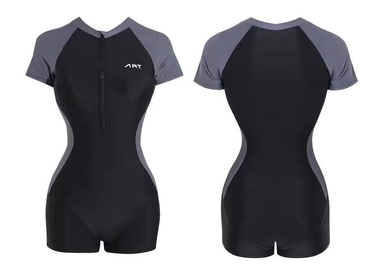 【送料無料◎】 新しい半袖水着女性ワンピースラッシュガードサーフボディスーツジッパー水着ガールモノキニバス水着