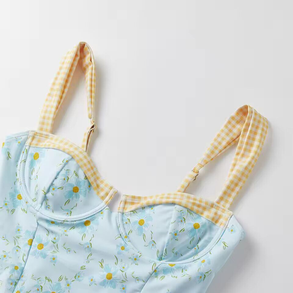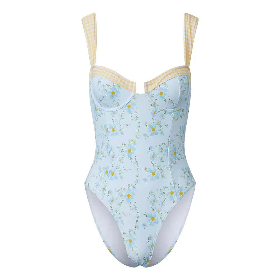 【送料無料◎】 女性の調節可能な水着花柄パッチワークプッシュアップアンダーワイヤー痩身水着夏のビーチ水着モノキニ