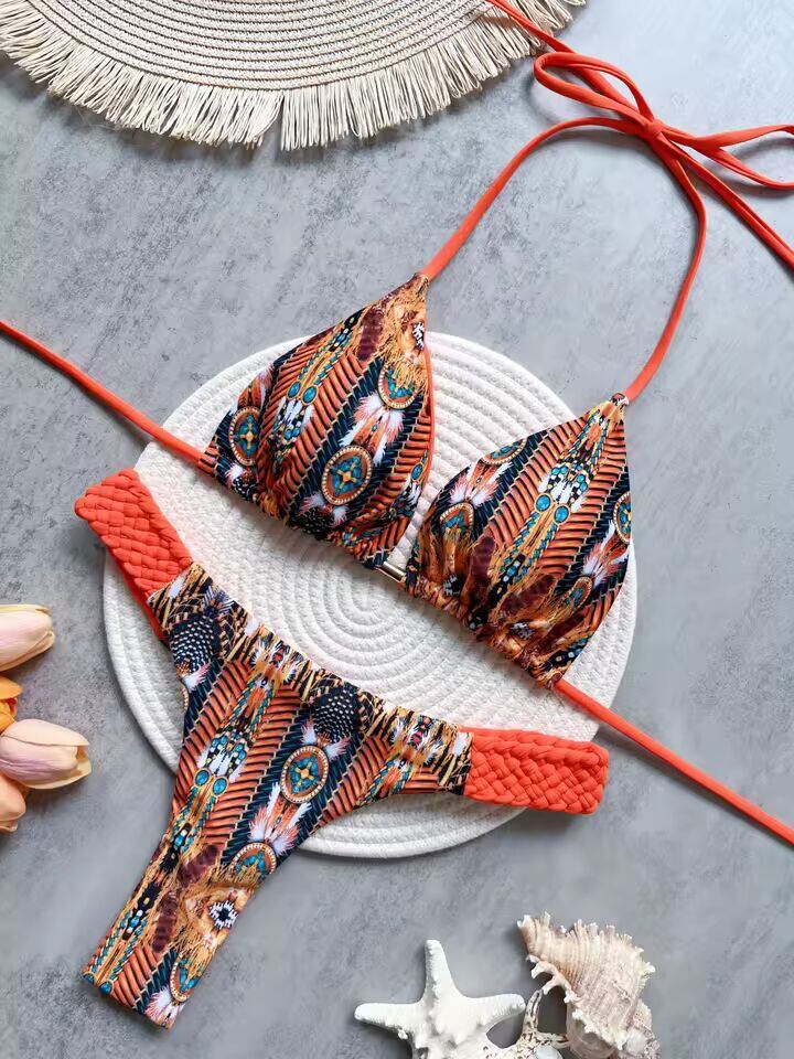 【送料無料◎】 RUOTONSEPT プリントホルターミニ Tバックハイカットビキニ女性水着女性水着ツーピースビキニセット入浴者水着水泳