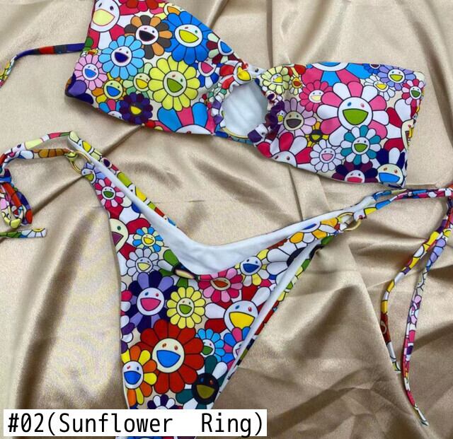 送料無料 女性用シムスーツひまわりプリントビキニツーピース女性用水着 フラワーデザイン AE33322280416344991