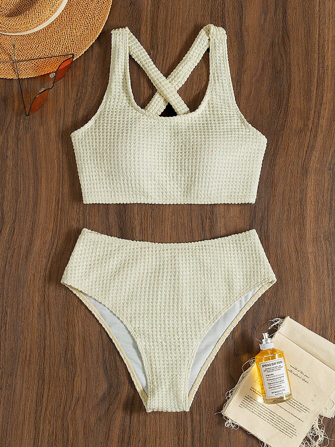 送料無料 ホワイトベージュプッシュアップウエストビキニセットセクシーなソリッドワッフルチェックテクスチャード水着女性水着2022水着夏 レッド サマー 夏物 ソリッドカラー AE15336658865173145