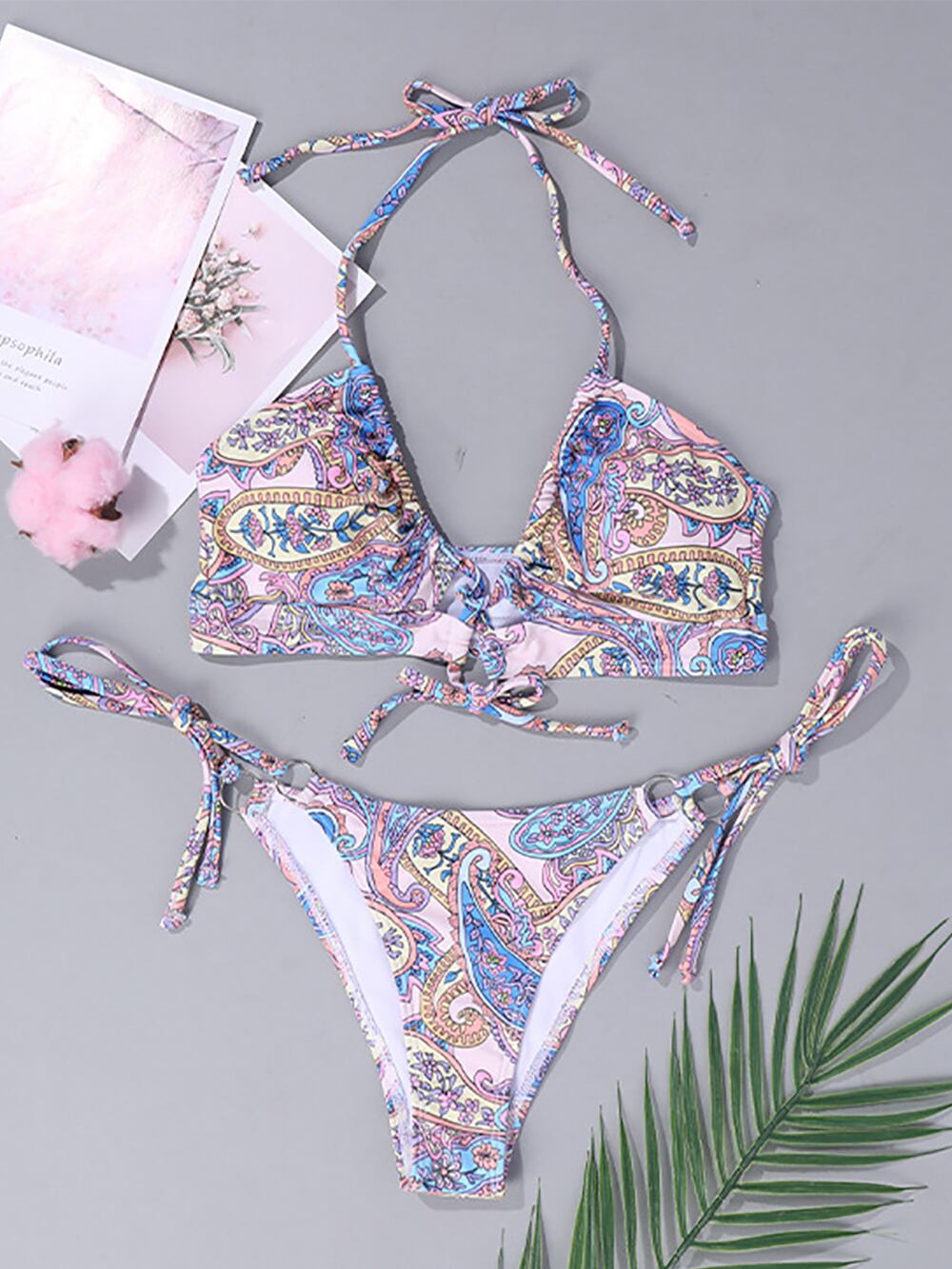 送料無料 セクシーなペイズリープリントストリングビキニセットマイクロトンブラジル水着女性2022包帯生意気な水着スイムビーチウェアバススーツ AE15336673657095907