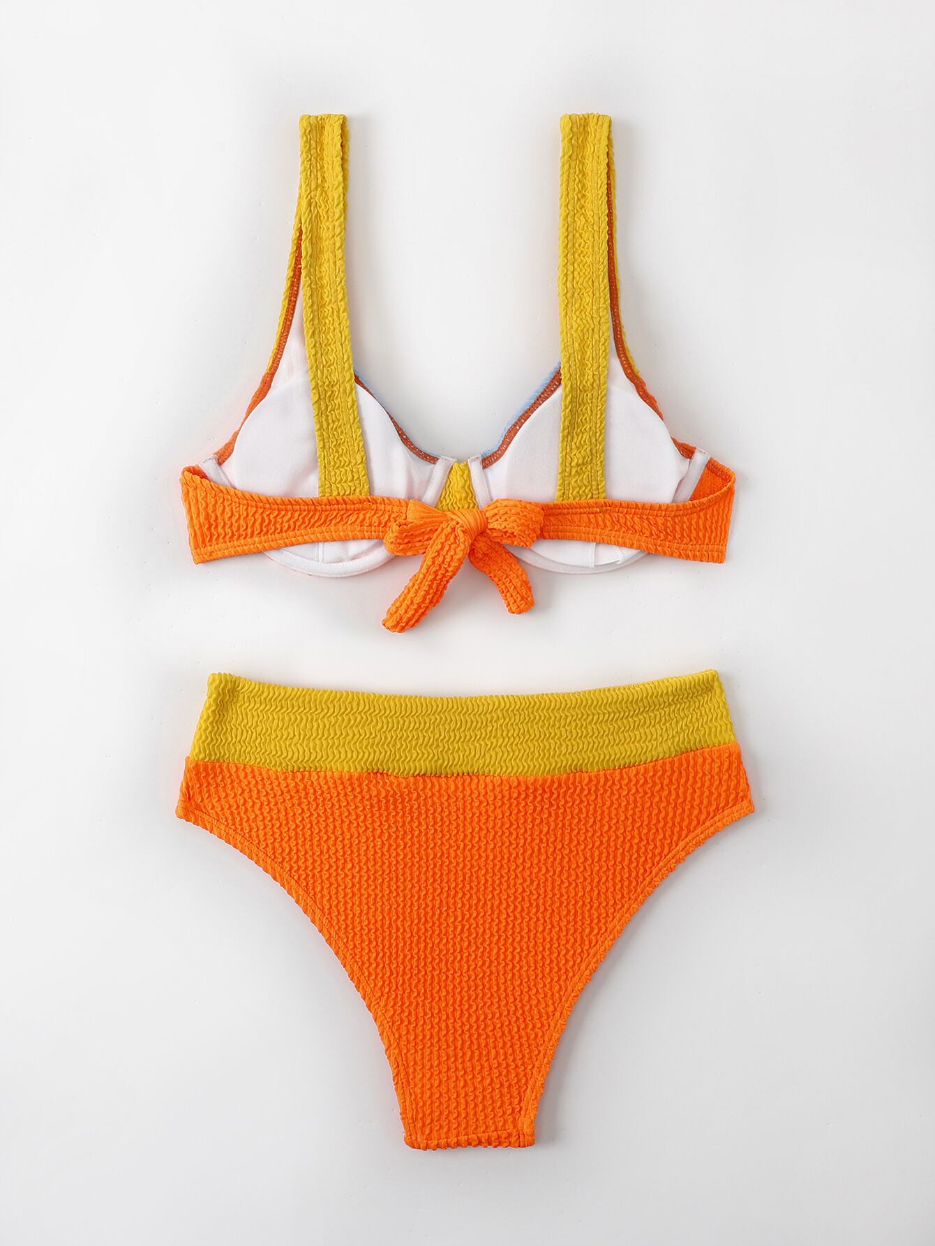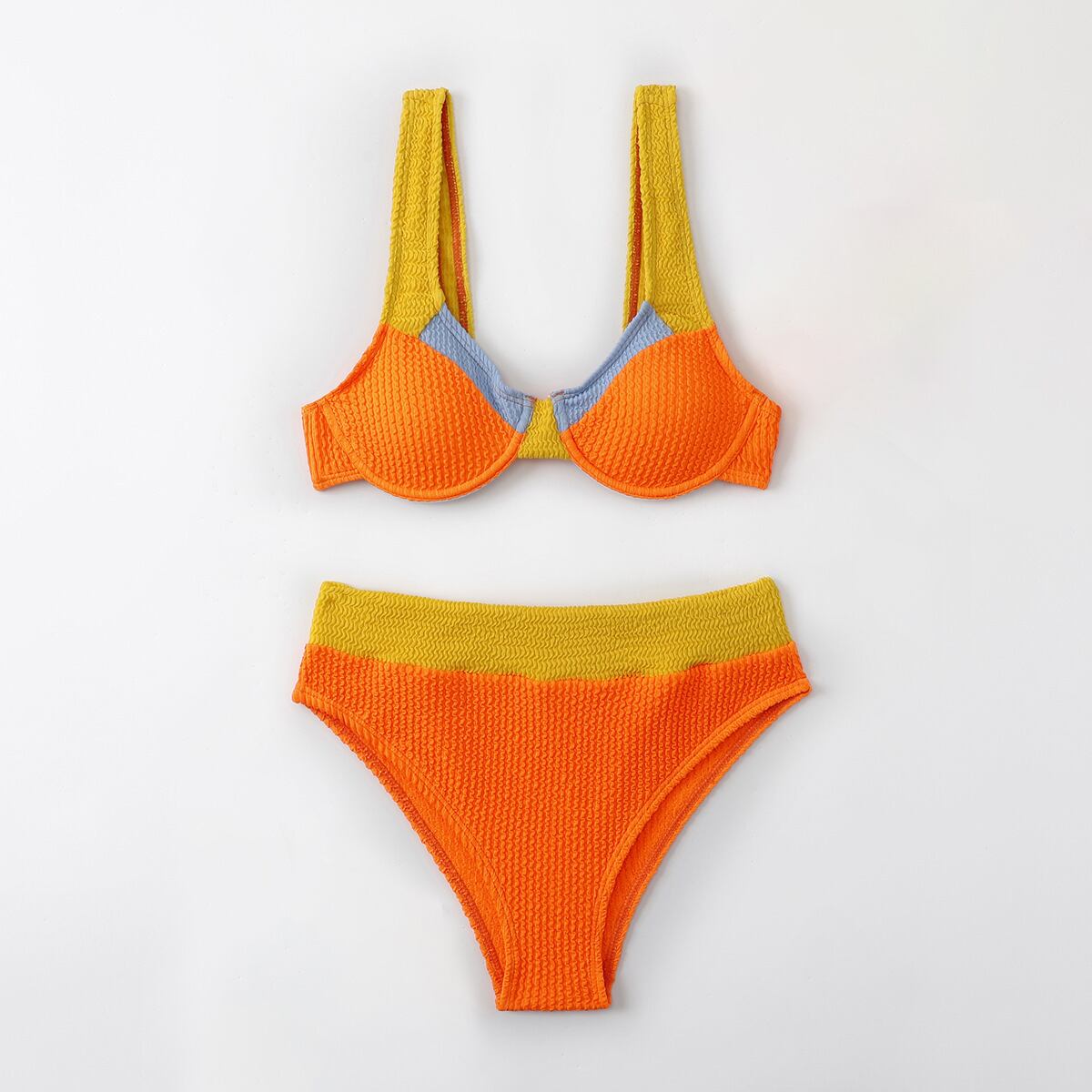 送料無料 プッシュアップウエストビキニセットセクシーネオンオレンジアンダーワイヤー水着女性クリンクル水着2022圧縮生地バススーツ夏 サマー 夏物 AE15336691484568360