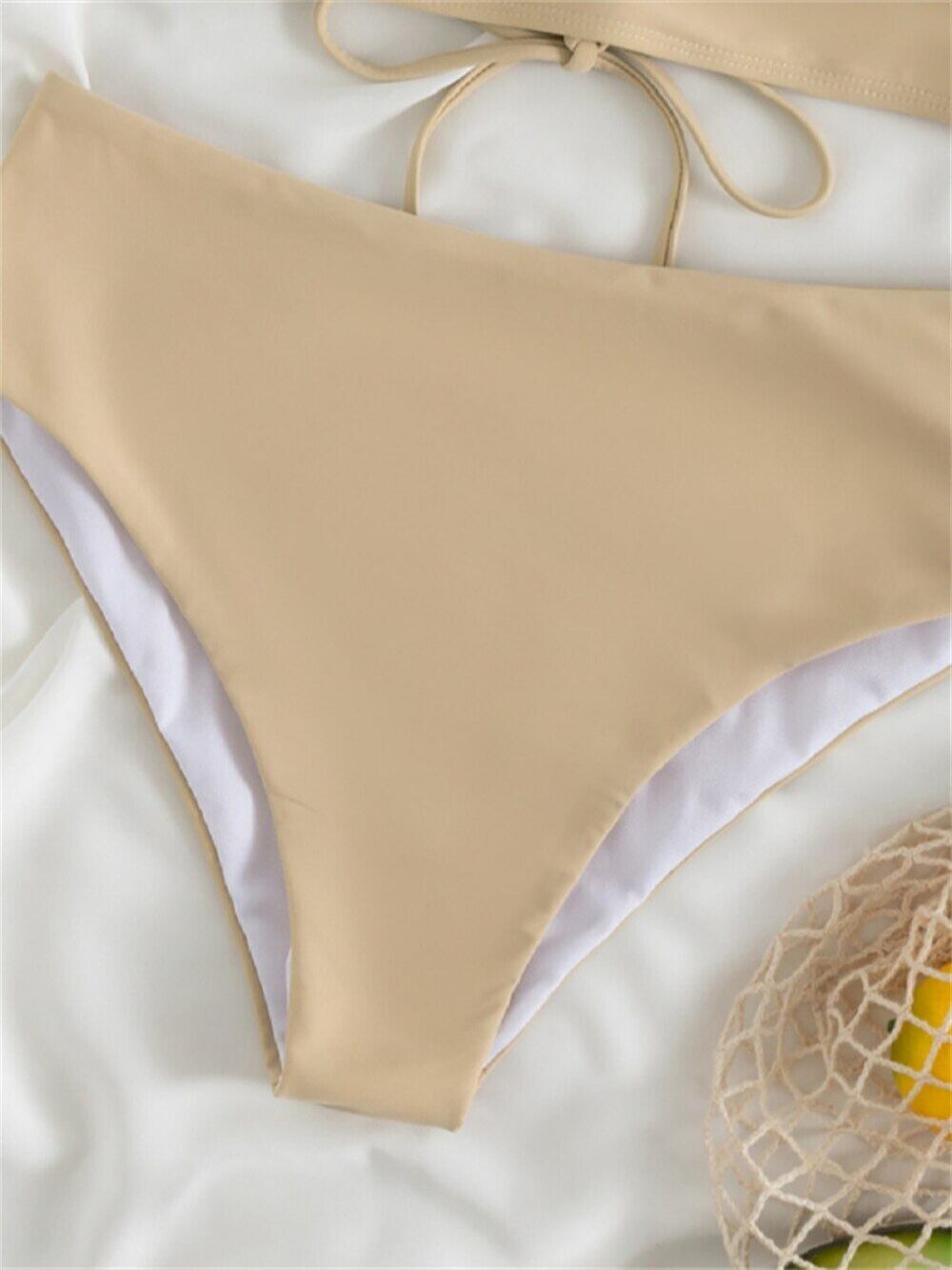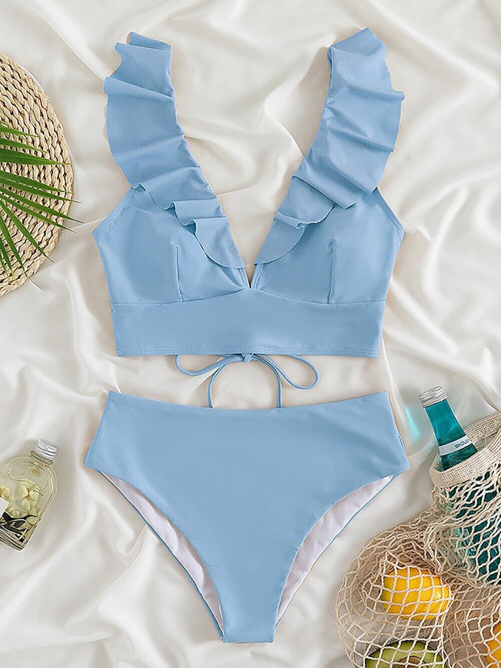 送料無料 PLAVKY Women Sexi V Neck Ruffle Trim Waist Bikini Set Nude Two Piece Swimsuit Swimwear Sexy 2022 Summer Beach Bath Suit ビキニ サマー 夏物 ビーチ Vネック AE15336612459820245