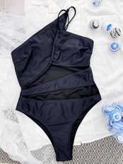送料無料 ブラックワンショルダーエクストリームマイクロ水着セクシーな女性ストリングカットアウト水着2022非対称バススーツワンピースサマーモノキニ 夏物 AE15336669172585157