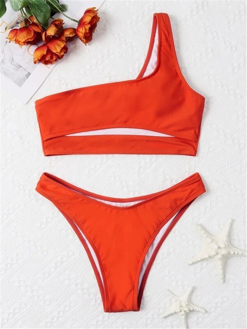 送料無料 2022セクシーなソリッドワンショルダー水着セット女性水着包帯水着ビキニアンダーボブトップ水着ビーチウェア ソリッドカラー AE15336612463497686