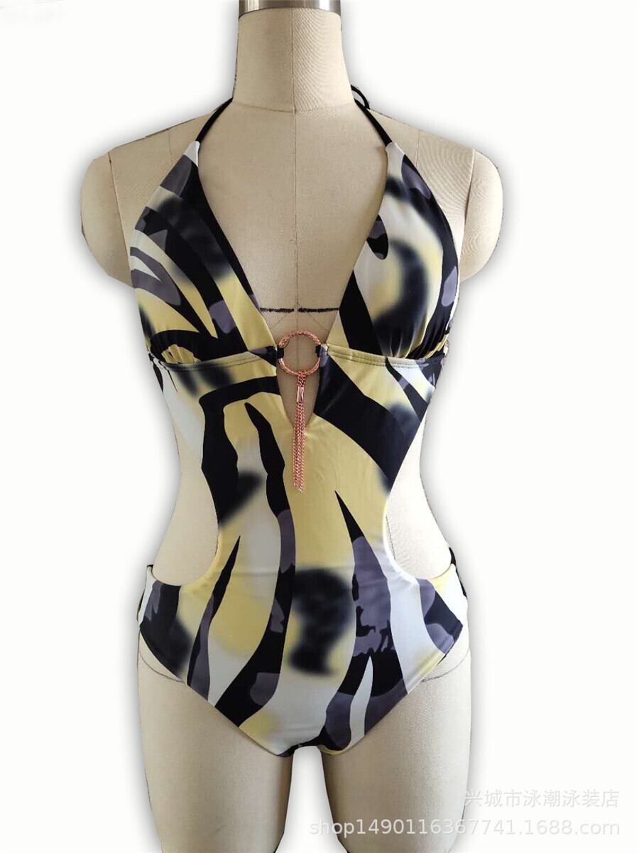 送料無料 ワンピース水着女性カット水着プッシュアップモノキニボディスーツプリント水着バックレス水着ビーチウェアビキニセット AE377653333537223587