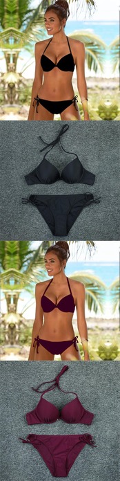 送料無料 2019セクシーなマイクロビキニ女性水着プッシュアップ水着ソリッドバンデージホルタービキニセットビーチ水着水着水着ビキニ ソリッドカラー AE377653347412752375