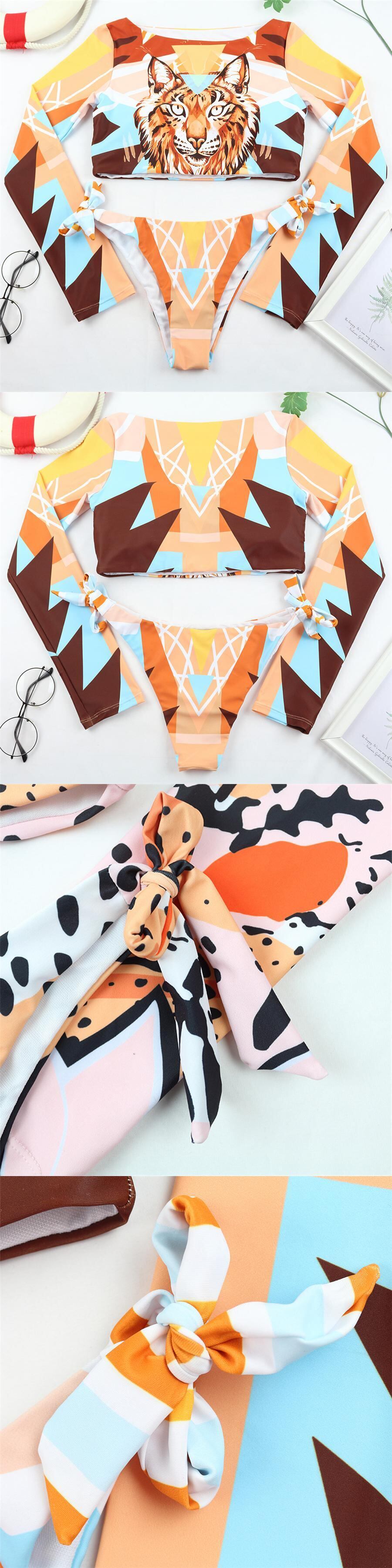 送料無料 プリントアニマルビキニ長袖水着女性入浴スーツレトロ水着ヴィンテージサーフィン水着モノキニブラジルビキニ ロング ビンテージ AE377653382744459898