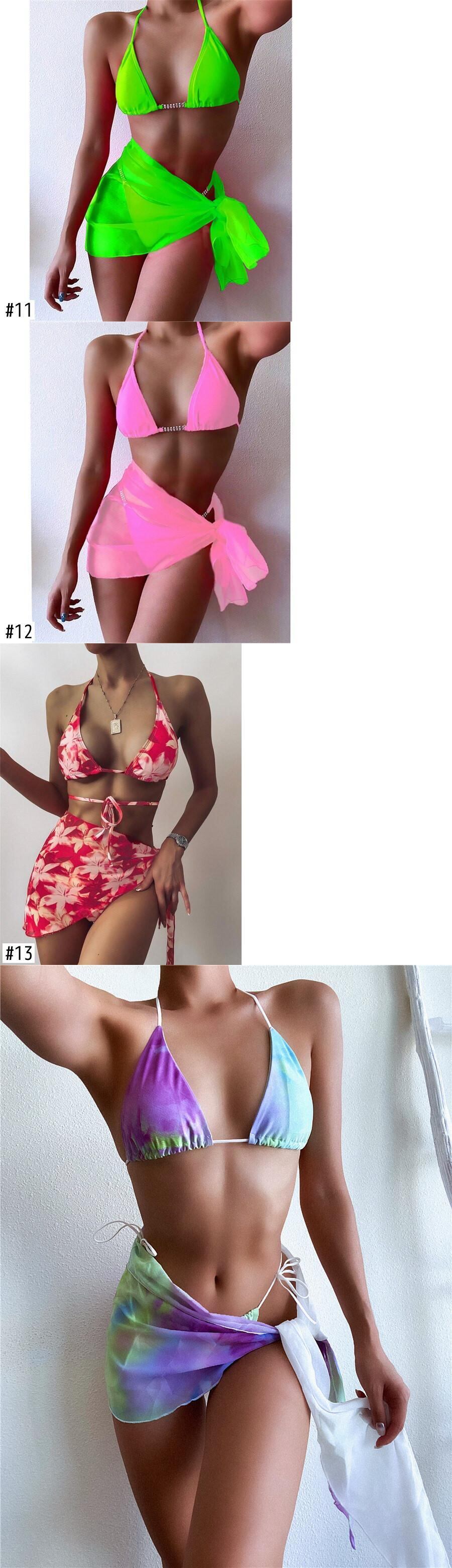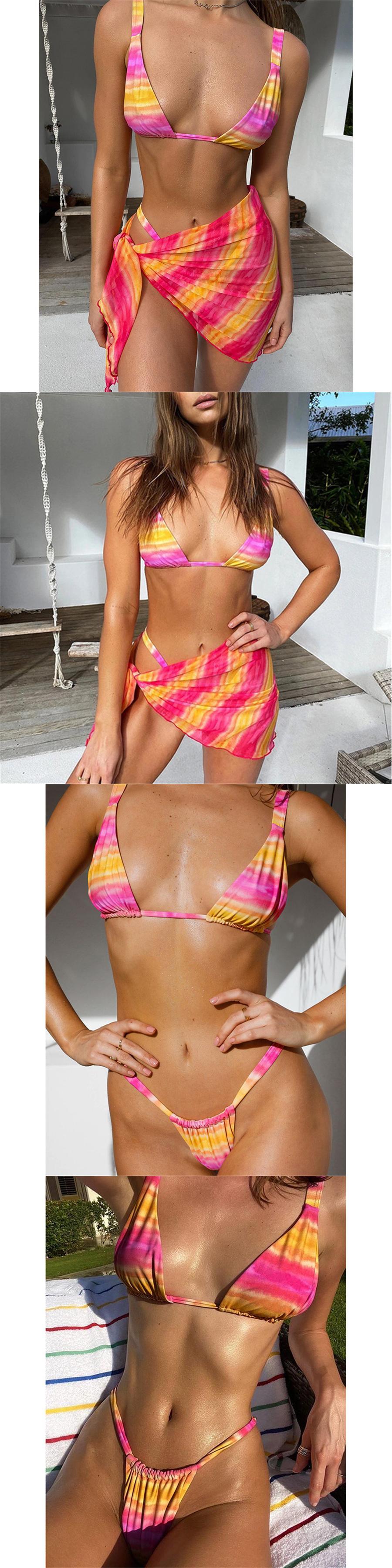 送料無料 セクシーなマイクロビキニ3ピース水着ホルタータイダイ水着プッシュアップバンデージ水着女性ビーチウェアメッシュビキニ水泳 AE377653393891027916