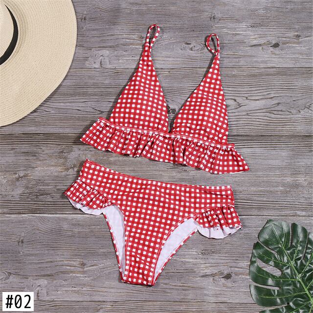 送料無料 2020セクシーチェック柄ビキニバンデージ水着ツーピース水着女性フリル水着ブラジルビキニ水着 AE377653366595458717