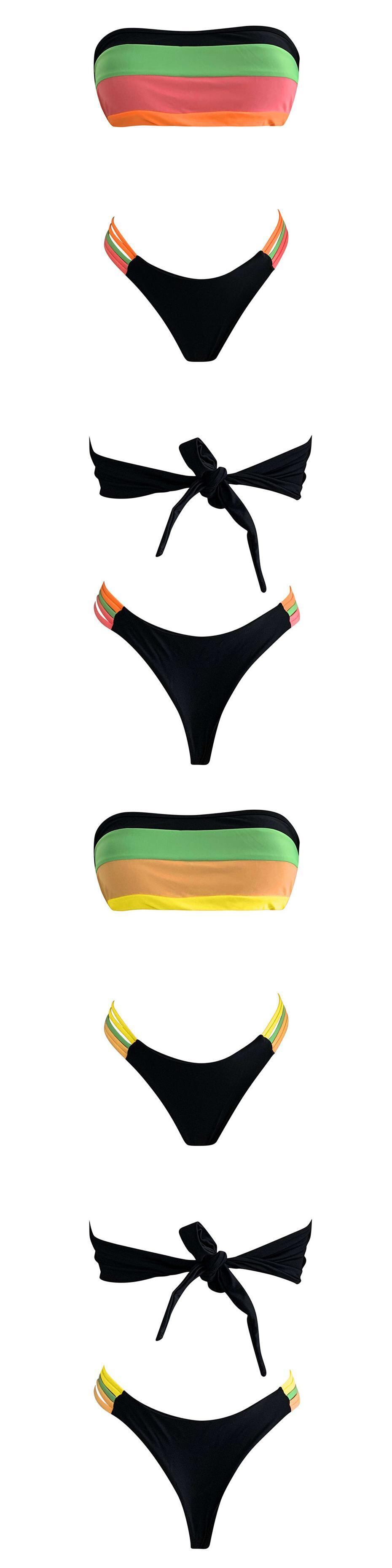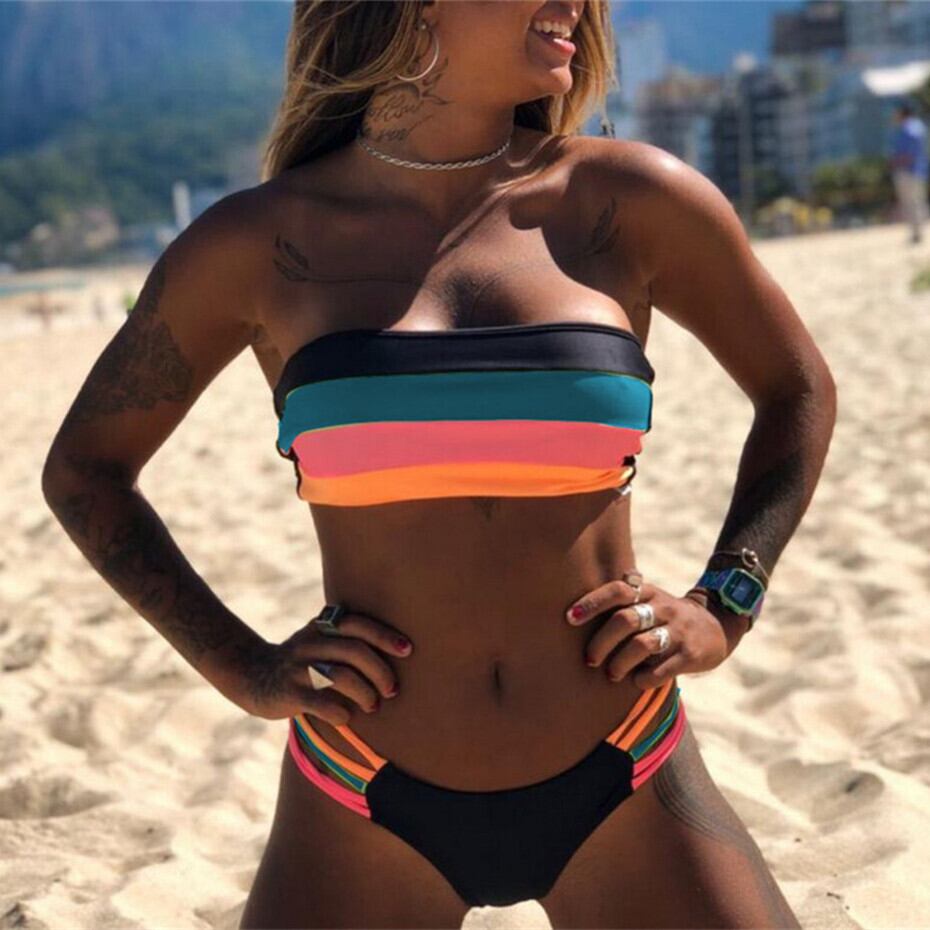 送料無料 セクシーなストライプ水着パッチワーク水着女性マイクロビキニプッシュアップ水着女性ひもビキニブラジルビキニ AE377653386510165851