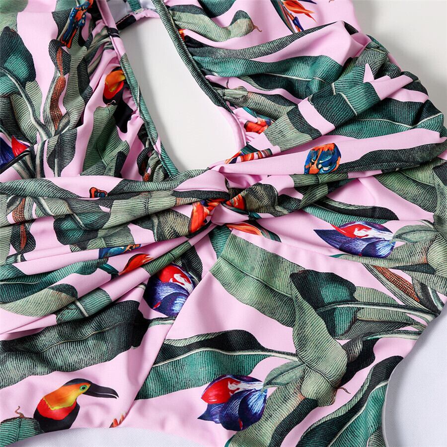 送料無料 セクシーなワンピース水着プッシュアップ水着女性長袖水着ビーチウェアプリントバンデージバックレスビキニ2020 ロング AE377653311017047525