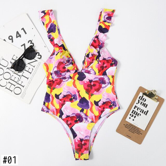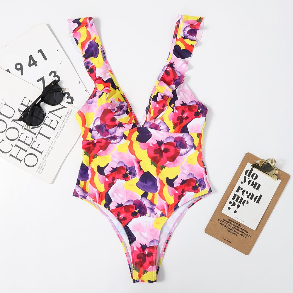 送料無料 2021セクシーなワンピース水着プッシュアップ水着女性フリル調節可能な肩ディープVビーチウェアボディスーツ水着水着水着 アジャスタブル AE377653328328881211