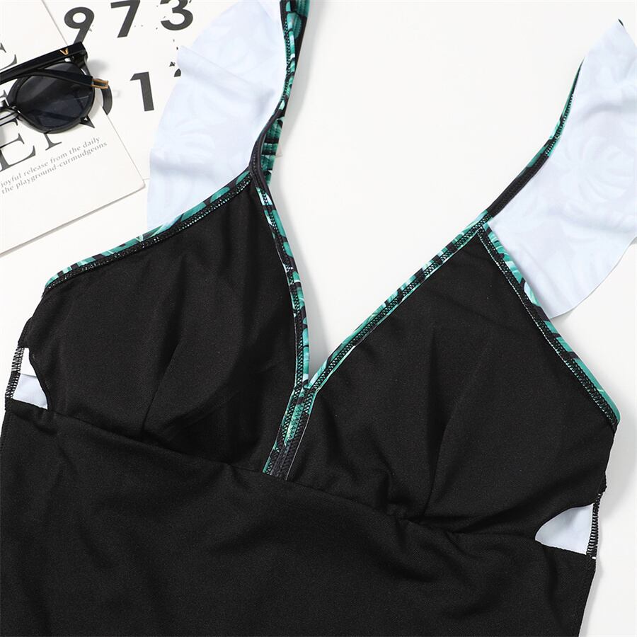 送料無料 2022セクシーフリルワンピース水着スプライシング水着女性水着ディープV水着ボディスーツプリントビーチウェア AE37765335782028100