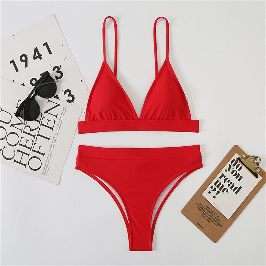 送料無料 ビキニウエスト水着女性プッシュアップ水着女性2022セクシーなVネックビキニソリッド水着ビキニセットビーチウェア ソリッドカラー AE37765336114636288