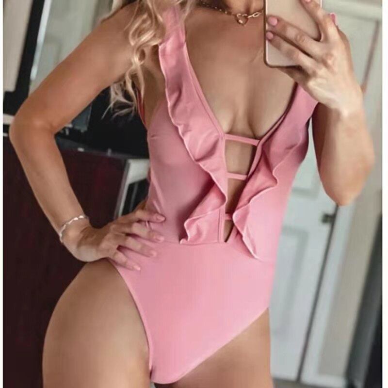 送料無料 ワンピース水着フリル水着女性モノキニ調節可能なショルダー水着プッシュアップボディスーツ水着ディープVビーチウェア アジャスタブル AE377653336374478018