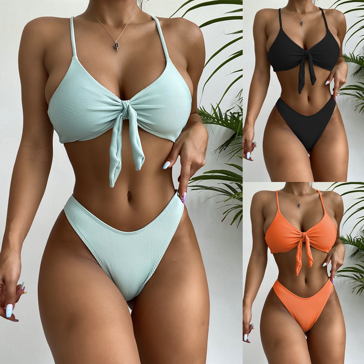 送料無料 セクシーな調節可能な水着女性ソリッドトライアングルストライプビキニ2021包帯背中の開いた水着女性ビーチウェアブラジルのビキニ アジャスタブル ソリッドカラー AE377653395823330527