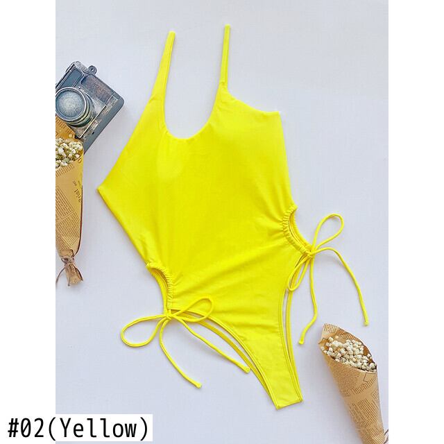 送料無料 セクシーなTバックピース水着女性カット水着ソリッドバンデージ水着水着モノキニボディスーツ ソリッドカラー AE377658824768321566