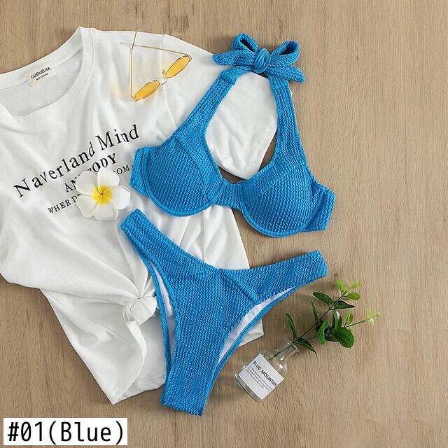 送料無料 セクシープッシュアップビキニ女性水着水着リブビキニセットビーチウェア入浴水着水着ホルタービキニ AE377658874641313931