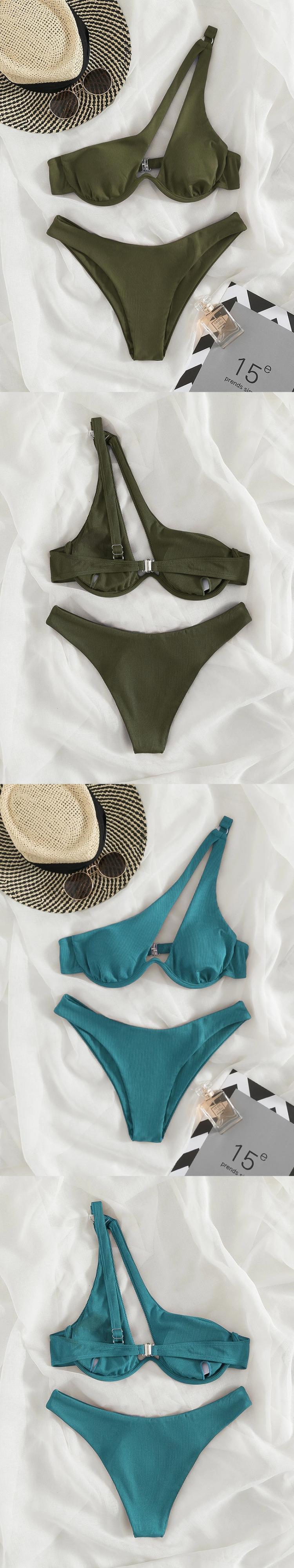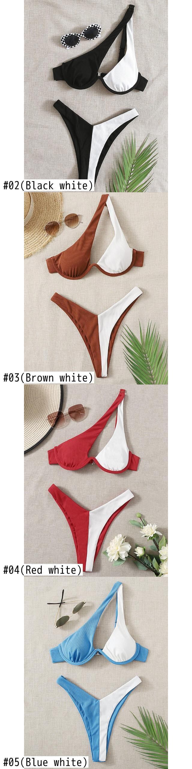送料無料 2022セクシーリブビキニワンショルダー水着女性水着プッシュアップビキニセットカット水着ブラジルビキニ AE377658876883495435