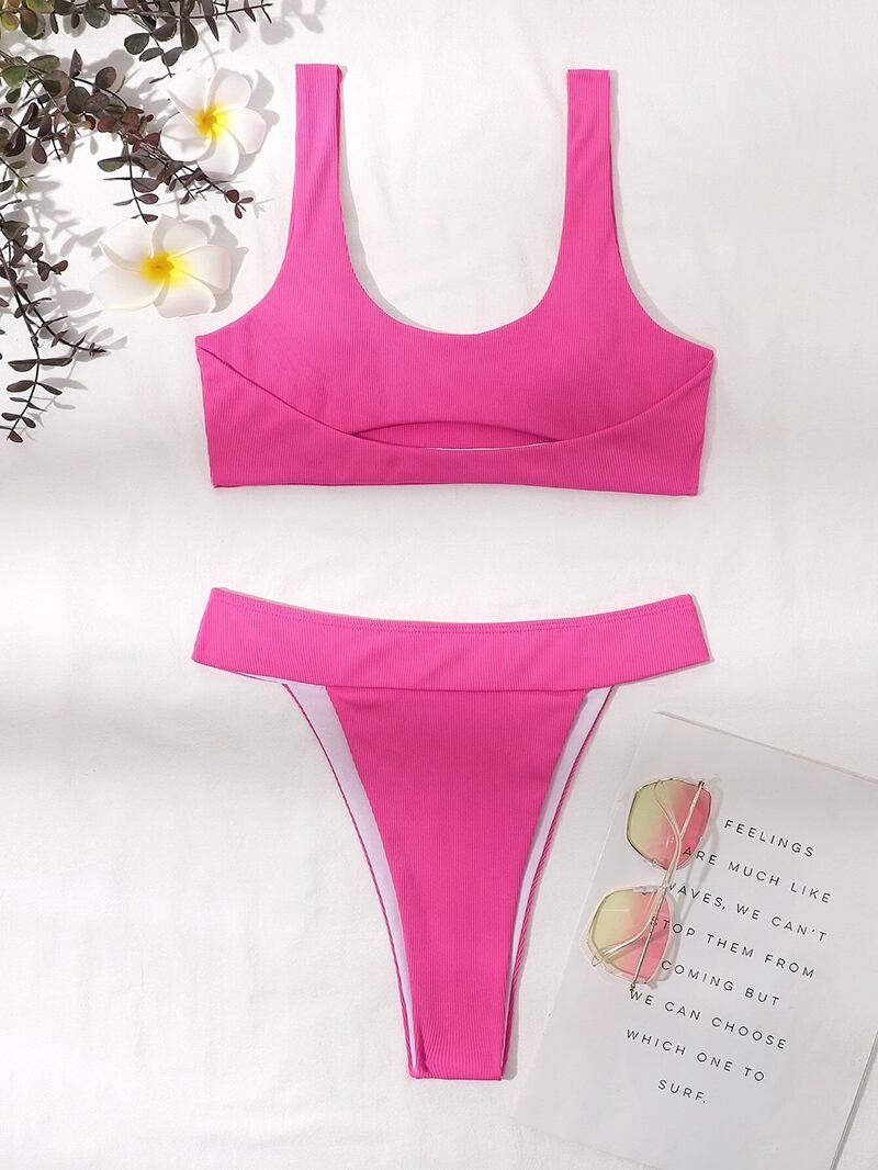 送料無料 ウエストビキニ2022セクシーリブ水着中空アウト水着女性ツーピースビキニセットTバック水着水着 AE377658820954741313
