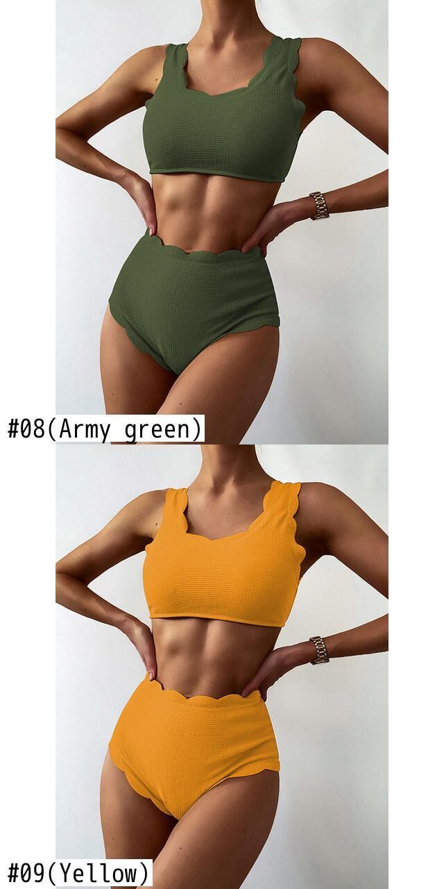 送料無料 スカラップトリムウエストビキニ水着女性水着プッシュアップビキニセットレースアップ水着ビーチウェアバザービキニ AE377658885789600969