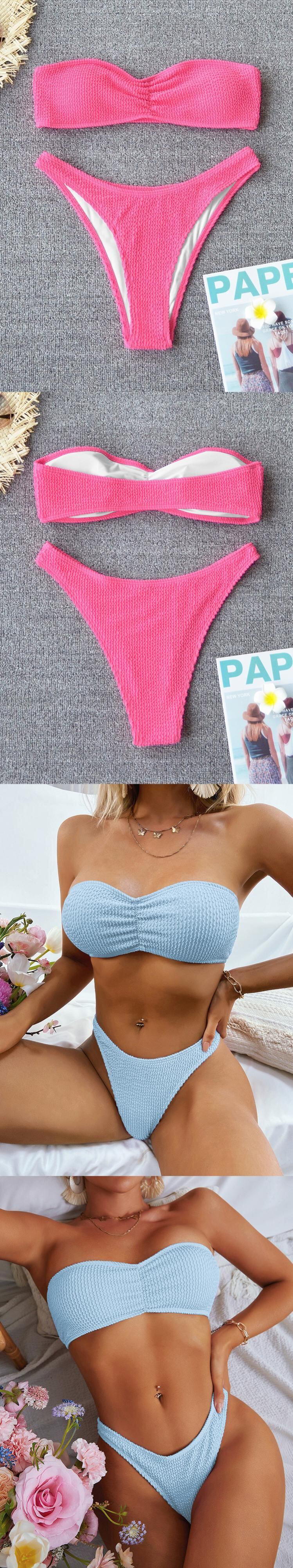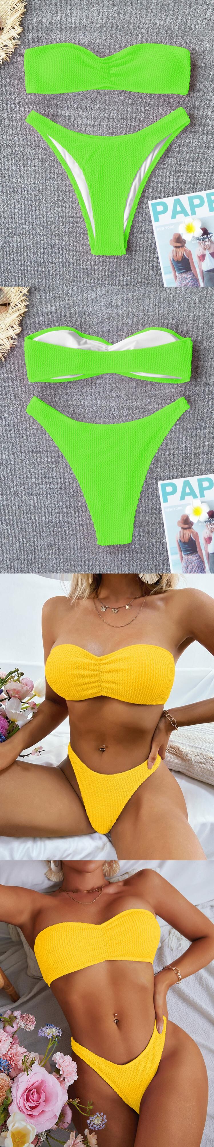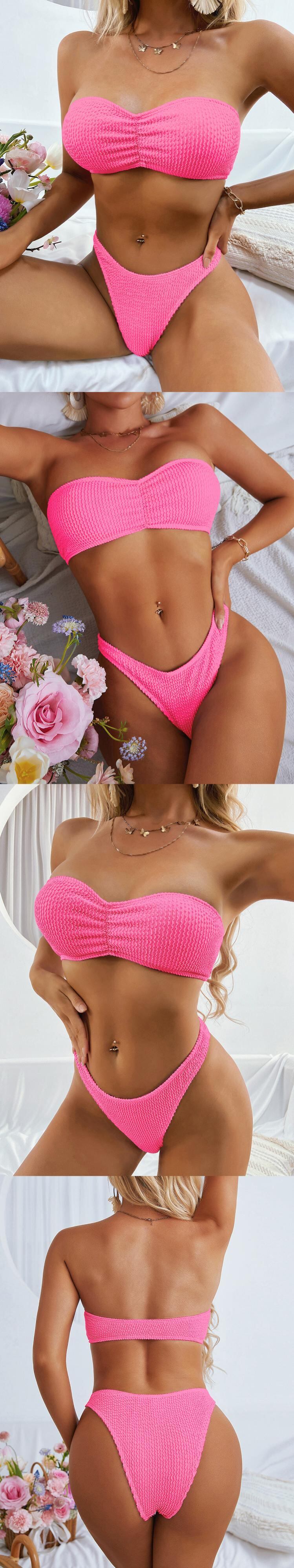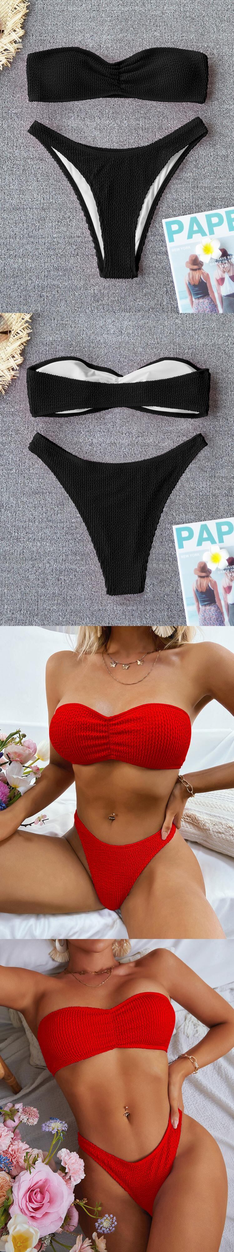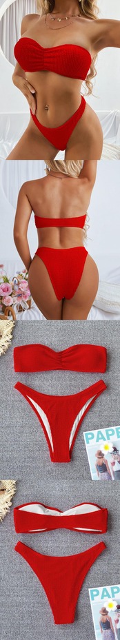送料無料 セクシーな質感のビキニ2022バンドー水着女性水着プッシュアップビキニセットソリッド水着ビーチウェアビキニ レッド ソリッドカラー AE377658838561616068