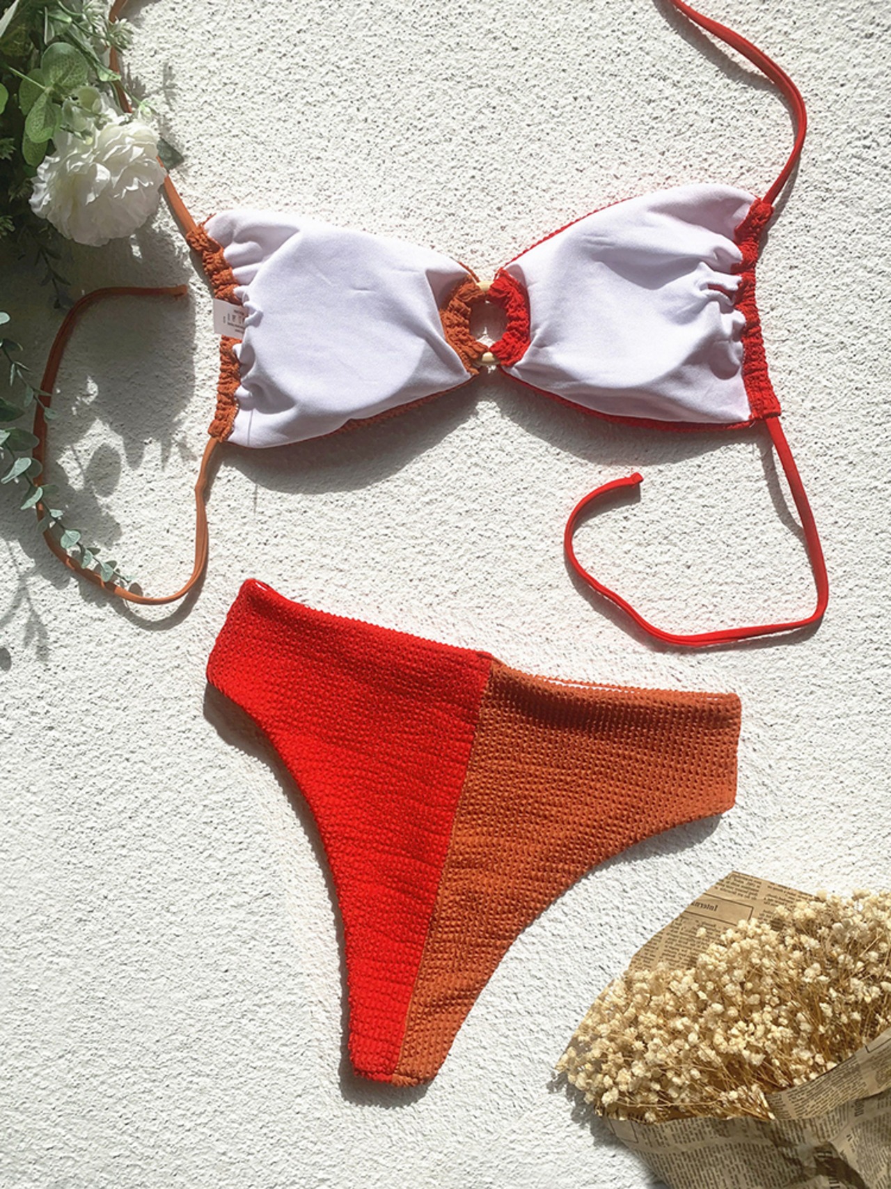 送料無料 スプライシングウエストビキニ女性水着水着バンドービキニセットバンデージビーチウェア水着水着ビキニ AE377658876556384622