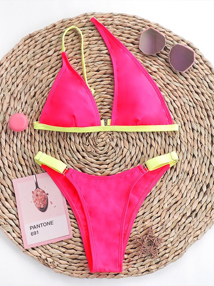 送料無料 セクシーなスプライシングビキニ水着女性水着ツーピースビキニセットブラジルの水着ビーチウェアビキニバス AE377658835630076436