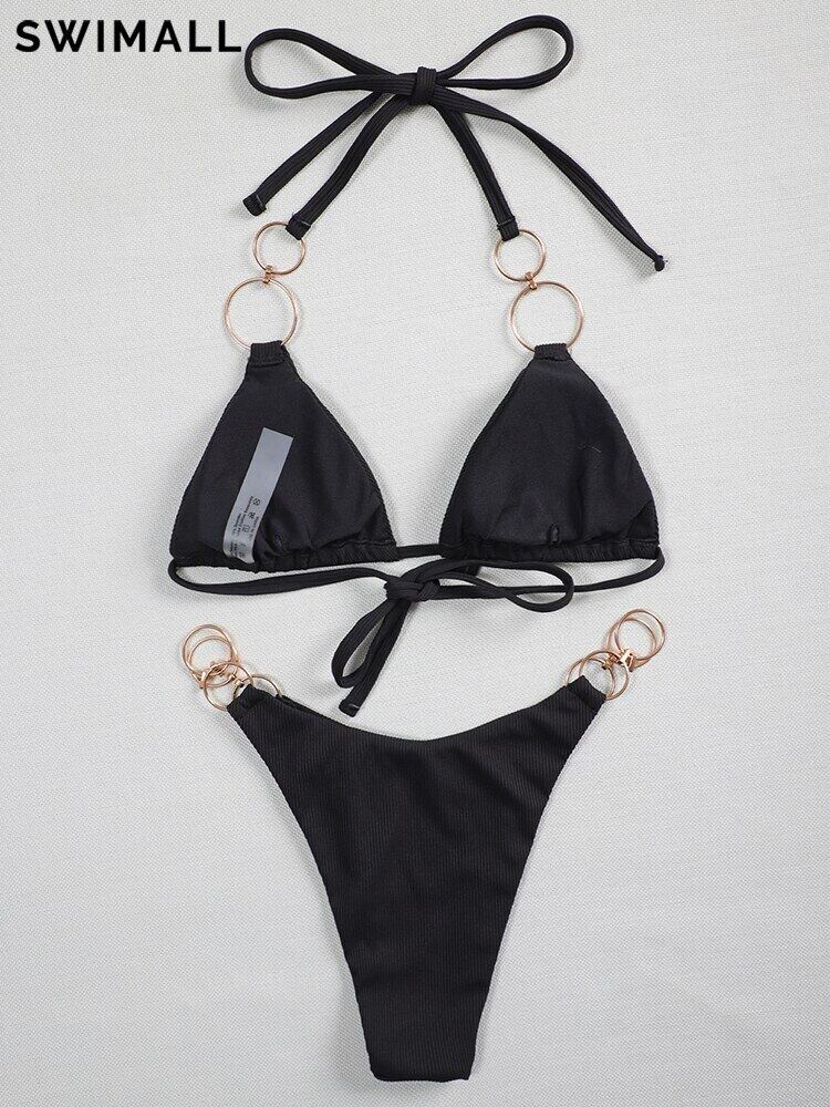 送料無料 メタルリングマイクロビキニ2022女性水着プッシュアップビキニセット水着ブラックブラジリアン水着ビーチウェアビキニ 指輪 AE377658815997718780