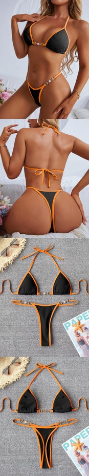 送料無料 セクシーなマイクロビキニ2022チェーン水着女性水着リブビキニセットブラジルの水着ビーチウェアバザービキニ AE377658884477851229