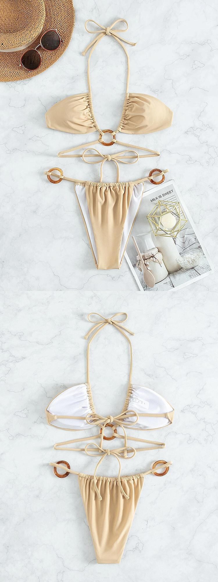 送料無料 セクシーなソリッドビキニ水着女性水着ホルターブラジリアンビキニセットTバックバザー水着サマービーチウェア 夏物 ソリッドカラー AE377658875505378255