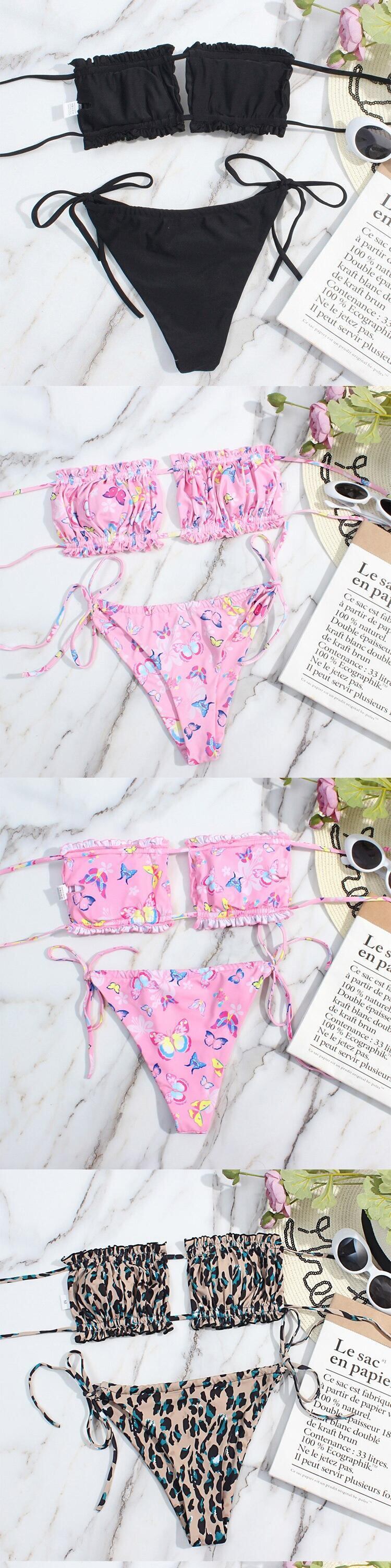 送料無料 女性プリーツバンドー水着セクシースプライシングビキニ2021ストリング水着ビーチステッチミニTバックビキニ水着 AE36656669385139411