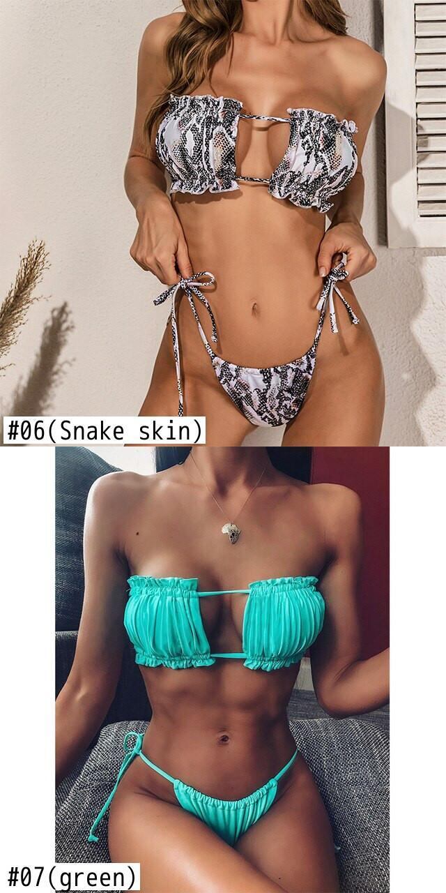 送料無料 リブ編みビキニストリングフリルレディース水着2021バンドーフォールド水着カットツーピース水着イエロービキニセット AE36656681457372155