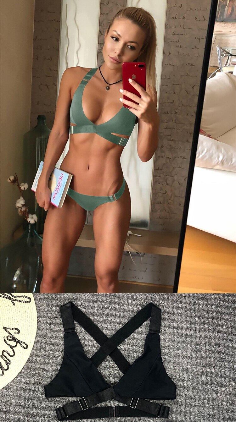 送料無料 2ピース水着アジャスタブルソリッドセクシービキニ女性は腕立て伏せ水着バンドー水着スウィームウェアレディースを調整することができます ソリッドカラー AE36656629370030078