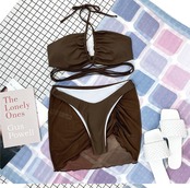 送料無料 3PCSソリッドホルタービキニ2021セクシーなバンデージ水着女性アンダーボブ水着ストラップセットスカート付きスウェットウェアスーツスイムトリキニ ソリッドカラー AE36656693607498887