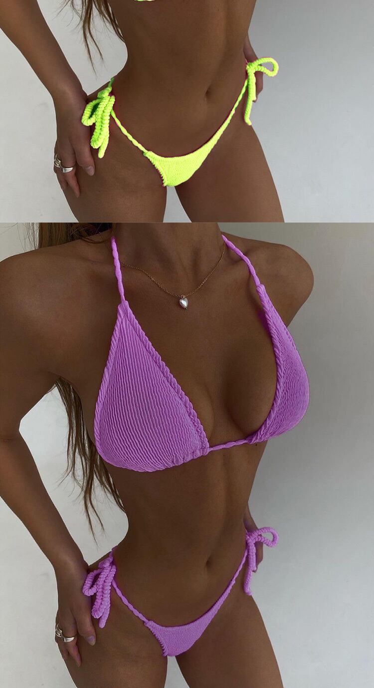 送料無料 女性水着ストリングマイクロビキニエクストリームセクシーセクシーリブ水着フェミニンビキニネクタイ付きブラジル水着 AE36656670383660649