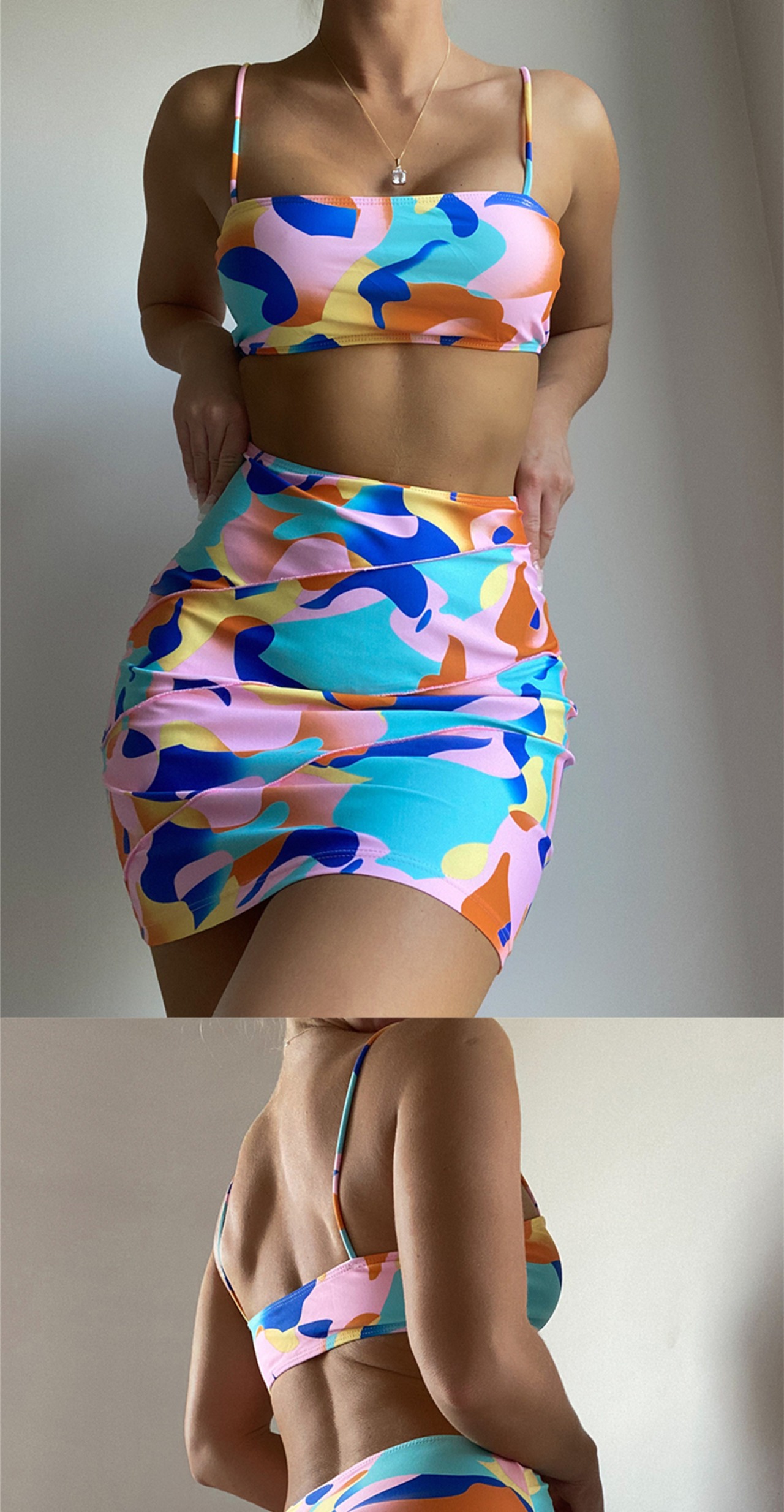 送料無料 3ピース2022スタイルの女性用水着カラーパックヒップ幾何学模様セクシーなブラジルのビーチ水着タイダイビキニセクシーなトリキニ AE36656636912622922