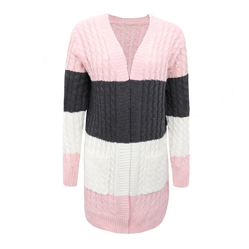 送料無料 ニットセーター2022秋女性製品ストライプステッチコントラストツイストセータールーズウィンターカーディガン オータム 秋物 冬物 AE36656635139788495