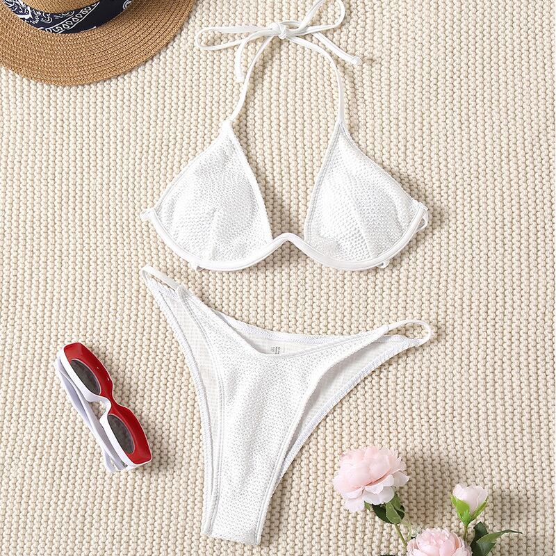 送料無料 水着2022女性ソリッドリブアンダーワイヤービキニ水着2022スタイリッシュな2ピースプッシュアップ女性スーツと水泳トランク ソリッドカラー AE36656641953481459