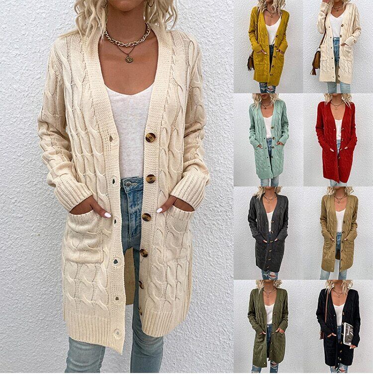 送料無料 レディースセーターニットセーターボタンカーディガン2022年秋冬ルーズシックスウィートニットコートロングツイストセーター 大人ガーリー キュート カジュアル オータム 秋物 ウィンター 冬物 AE36656625903930153