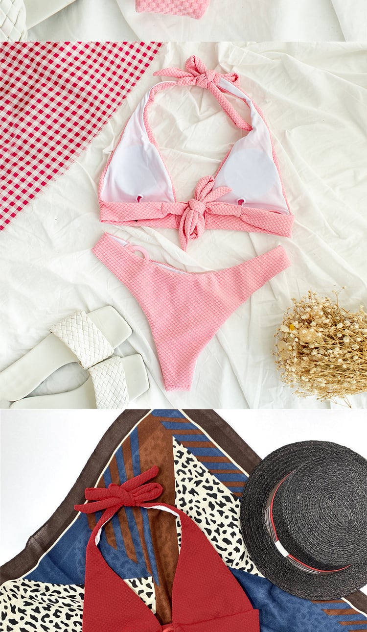 送料無料 リブ編みのソリッドセクシービキニ2ピース水着ウエストリングサマー水着プッシュアップスイープウェアレディース日光浴水着 夏物 指輪 ソリッドカラー AE36656687531690931