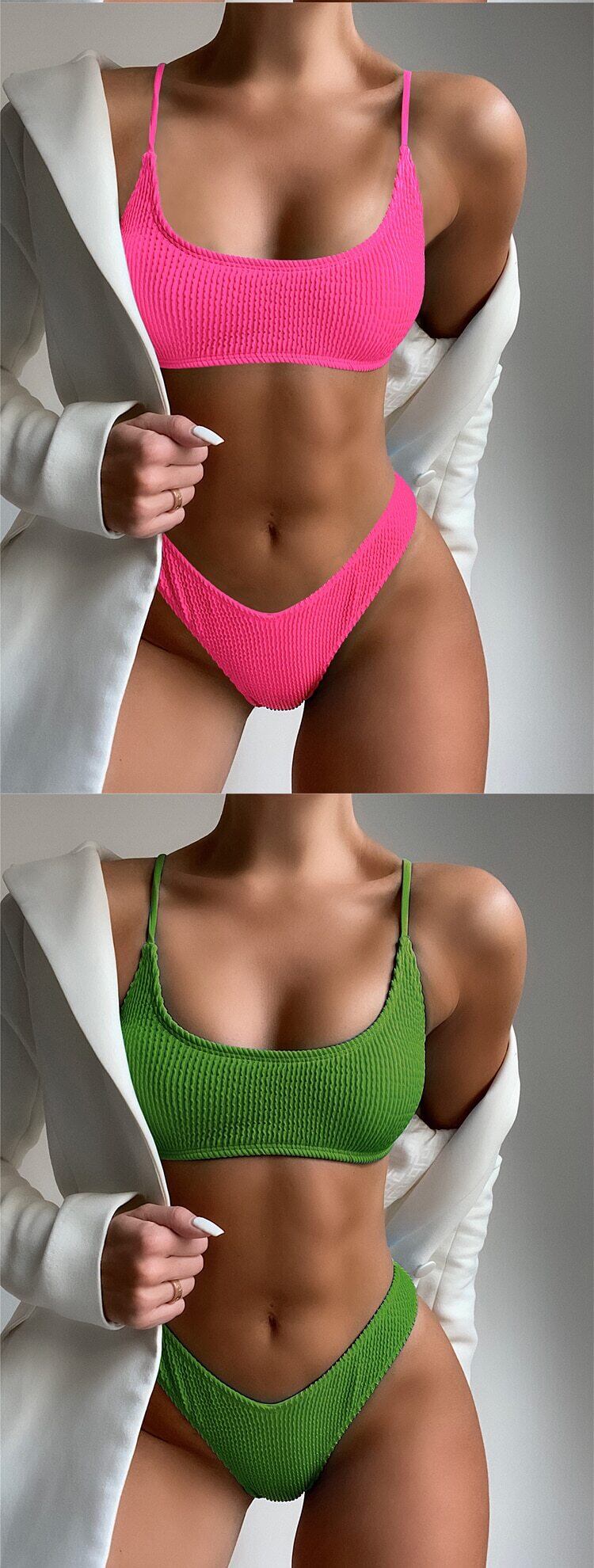 送料無料 2022リブ付きビキニセットソリッド水着ウエストビキニ水着女性水着セクシーカットビーチウェア水着 ソリッドカラー AE36656670513299494